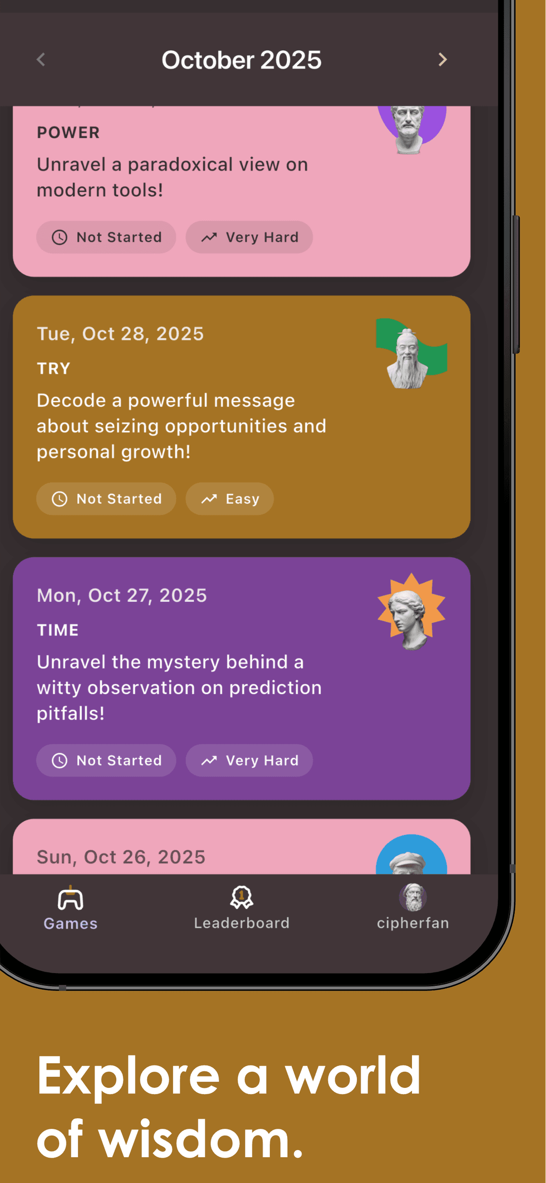 Every day, a new encrypted quote waits to be cracked. Swap letters, spot patterns, reveal timeless wisdom.